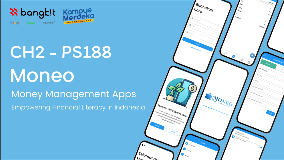 Moneo App is a comprehensive money management application developed by Team CH2-PS188 as part of the Bangkit Academy program, led by Google, Tokopedia, Gojek, and Traveloka. The application is designed to tackle the critical issue of financial illiteracy in Indonesia. With a population of 277.7 million people, nearly half of the citizens struggle with managing their personal finances, which negatively impacts economic growth and individual well-being. Moneo seeks to bridge this gap by leveraging technology to provide a user-friendly mobile application that assists users in managing their finances effectively.